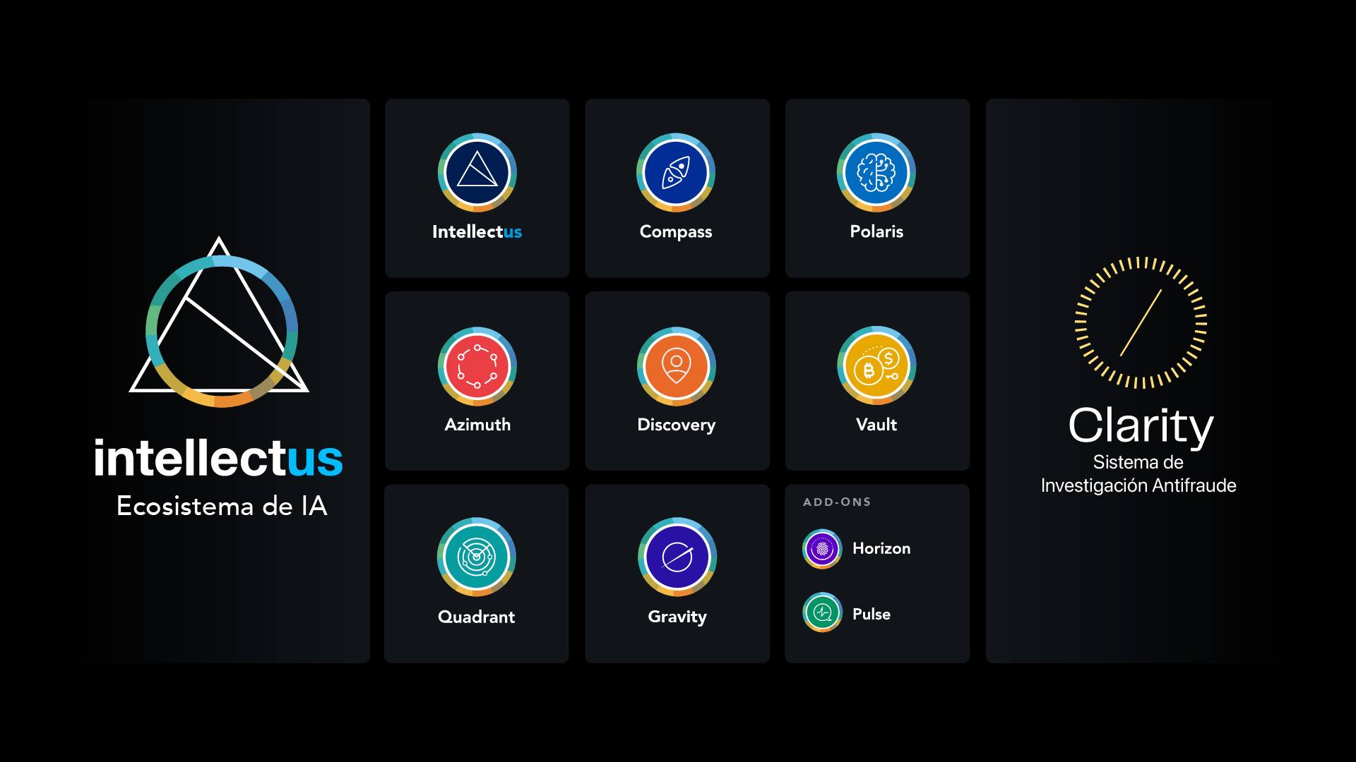 Ofrecemos las herramientas para ver con claridad, actuar con rapidez y mantenerse a la vanguardia. Nuestro ecosistema de IA conecta información dispersa, descubre enlaces ocultos y apoya a analistas. Información real. Sin rodeos.